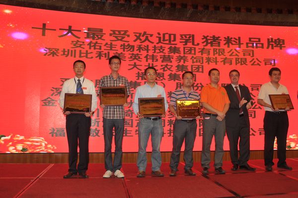 27日晚颁奖盛典在开元名都五星级酒店隆重举行,本次评选经过网上公开投票、专家组综合评审,共选出十大新锐乳猪料品牌、十大最具潜力乳猪料品牌、规模养殖场喜爱品牌,以及“中国十大最受欢迎乳猪料品牌”。颁奖台上,由法国乐斯福集团亚太区总裁荣维乐先生揭晓最终大奖,铁骑力士乳猪料众望所归,以卓越的产品质量、广泛的市场影响力、显著的饲喂效果、深得人心的口碑最终获得十大最受欢迎乳猪料品牌。