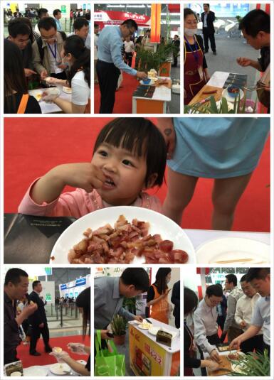 展会现场,圣迪乐村鸡蛋和黑味美猪肉引来众多围观者,许多人在品尝之后都评价圣迪乐村鸡蛋——香,黑味美黑猪 肉——好吃。