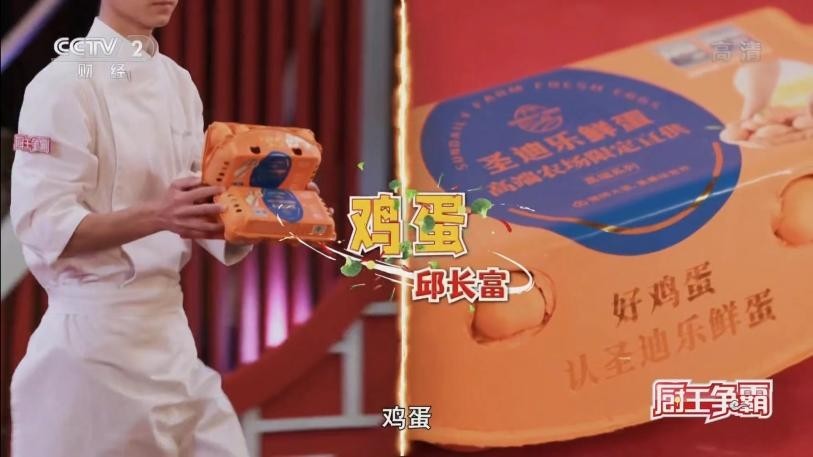 (厨王争霸节目现场选手选择圣迪乐鲜蛋作为食材)